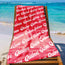 Hoge kwaliteit gepersonaliseerde naam handdoek in de kleur donker rood.